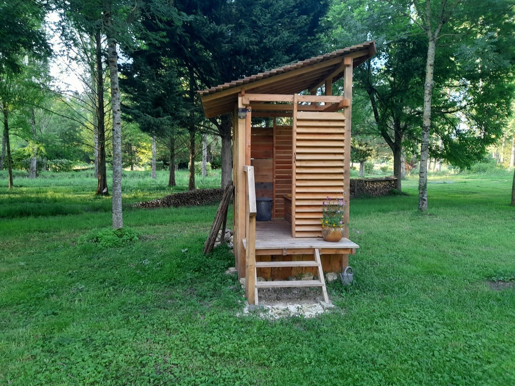 Niché dans le parc au milieu des arbres et face à la rivière, dont le son blanc favorise la détente et la relaxation.